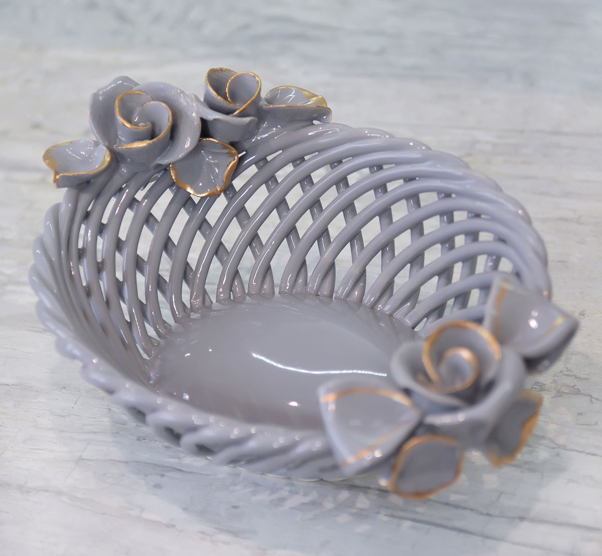Конфетница Ладушка лепка серая (декор заменителем золота)